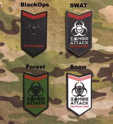 3D Nášivka "Zombie Attack " , připevnění pomocí suchého zipu, materiál guma, rozměry 45x78 mm