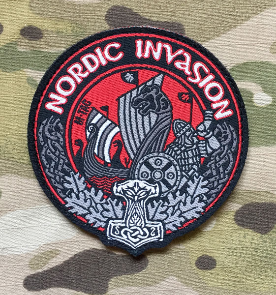 Tkaná nášivka "Nordic Invasion" , velikost 80x80 mm, připevnění pomocí suchého zipu