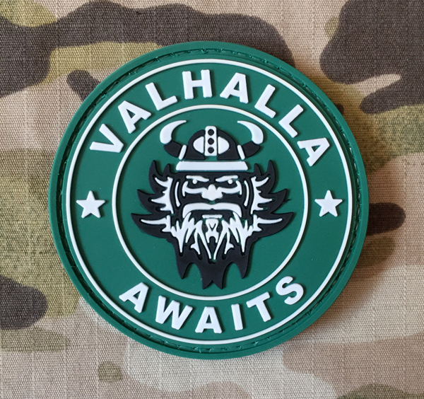 3D PVC nášivka "Valhalla Awaits", velikost 70x70 mm, připevnění pomocí suchého zipu