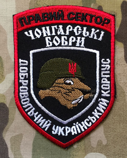 Ukrajina Military Patch Right Sector - Dobrovolnyj Ukrainskyj Korpus Čongarski Bobry - nášivkaSkladem 2 ks150 Kč/ ks