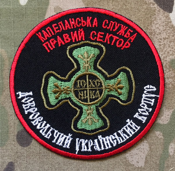 Ukrajina Military Patch Right Sector - Dobrovolnyj Ukrainskyj Korpus Kapelanska Služba - nášivkaSkladem 1 ks150 Kč/ ks