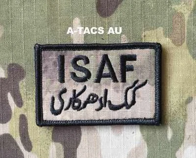 Vyšívaná nášivka "ISAF " , připevnění pomocí suchého zipu, rozměry 70x45 mm