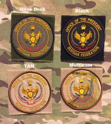 Vyšívaná nášivka "Office of The President Russian Federation" , připevnění pomocí suchého zipu, velikost 100x100 mm