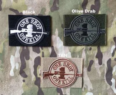 Vyšívaná nášivka " One Shot One Kill" , připevnění pomocí suchého zipu, velikost 100x70 mm celý popis