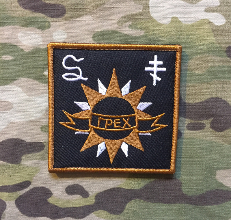 Vyšívaná nášivka "STALKER Sin Faction " , velikost 80x80 mm, připevnění pomocí suchého zipu