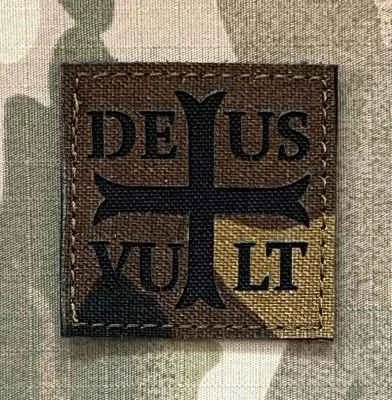 Cordura LaserCut nášivka "DEUS VULT Cross", Laserově vyřezánané , připevnění pomoci suchého zipu, velikost 50x50 mm