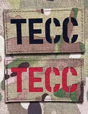 Cordura LaserCut nášivka "TECC - Tactical Emergency Casualty Care - Instructor", Laserově vyřezánané , připevnění pomoci suchého zipu, velikost 90x50 mm