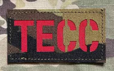 Cordura LaserCut nášivka "TECC - Tactical Emergency Casualty Care - Instructor", Laserově vyřezánané , připevnění pomoci suchého zipu, velikost 90x50 mm