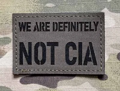 Laserově vyřezávaná nášivka "We Are Definitely NOT CIA",  materiál 500D Cordura velikost 75x50 mm, připevnění pomocí suchého zipu Cordura LaserCut Velcro Patch V případě zájmu o větší množství této nášivky, než je uvedeno skladem nebo výroby jiné barevné kombinace nás předem kontaktujte, Možnost zak... celý popis