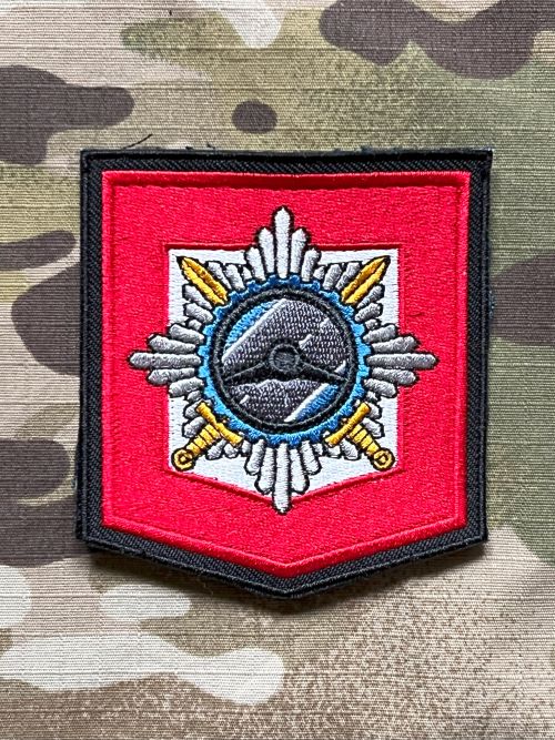 Vyšívaná nášivka "Police of Czech Republic - Dopravní policie - Pardubický kraj", rozměry 75x80 mm, připevnění pomocí suchého zipu