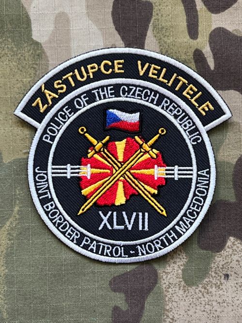 Vyšívaná nášivka "Police of Czech Republic - Joint Border Patrol- North Macedonia - XLVII - Zástupce velitele", rozměry 80x80 mm