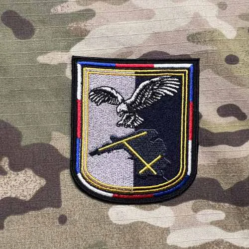 Vyšívaná nášivka "Police of Czech Republic - Oddělení ochany letiště Praha - Ruzyně", rozměry 70x80 mm,
