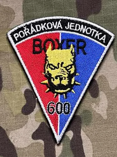 Vyšívaná nášivka "Police of Czech Republic - Pořádková jednotka - Boxer 600 - okres Děčín", rozměry 80x90 mm, připevnění pomocí suchého zipu