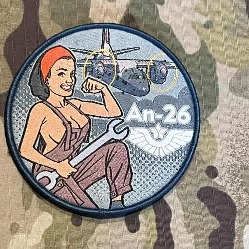 Tkaná nášivka "Retro ČSLA - An-26", rozměry 100x100 mm, připevnění pomocí suchého zipu
