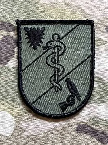 Vyšívaná nášivka "German Bundeswehr SanZ Bückeburg - TE Schäfer-Kaserne - Sanitätszentrum Bückeburg - Teileinheit Schäfer-Kaserne - Bückeburg" , velikost 65x80 mm,připevnění pomocí suchého zipu
