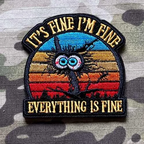 Vyšívaná nášivka "Everything Is Fine" rozměry 75x80 mm, připevnění pomocí suchého zipu