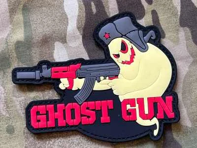 3D PVC nášivka "Ghost Gun", velikost 95x120 mm, připevnění pomocí sucého zipu