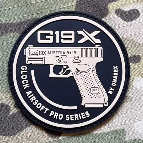 3D PVC nášivka "Glock19 X" , velikost 80x80 mm, připevnění pomocí suchého zip,
