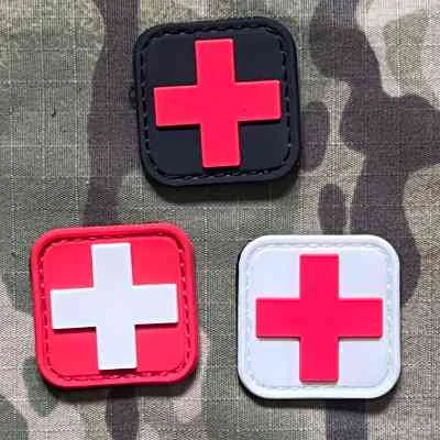 3D PVC nášivka "Medic Cross", rozměry 35x35 mm, připevnění pomocí suchého zipu