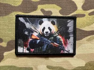 Tištěná nášivka "Panda Warrior" , velikost 75x50 mm, připevnění pomocí suchého zipu