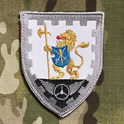 Vyšívaná nášivka "Ukraina 1004th Army Guard Battalion and Service Command of the Land Forces" , velikost 70x90 mm, připevnění pomocí suchého zipu