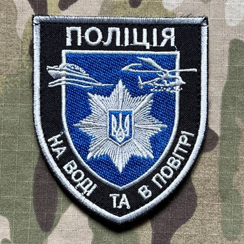 Vyšívaná nášivka "Ukraina Police - On Water - On Air" , velikost 80x90 mm, připevnění pomocí suchého zipu